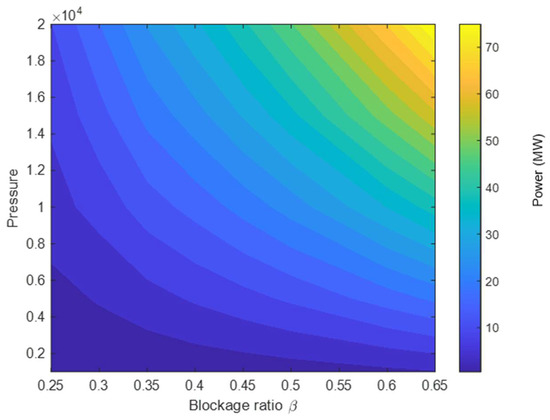 Figure 6 shows the power map due to the vehicle drag, with the blockage ratio and operating pressure as variable parameters for a vehicle traveling at Mach 0.6, using the rapid 1-D algorithm described earlier. The maximum power occurs at a higher blockage ratio and pressure pair. The minimum power is as expected at a lower blockage ratio and pressure. The influence of the operating pressure effect is more dominant than the blockage effect for the lower blockage ratio values. However, for the high blockage ratio, the opposite trend is displayed.
