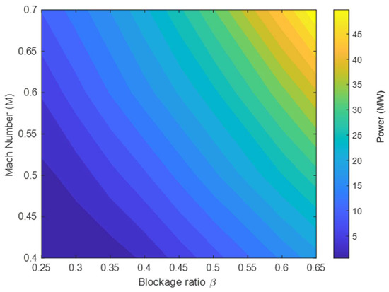 Power contours correlating blockage ratio and Mach number, .