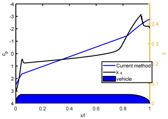 Figure 8 shows the axisymmetric vehicle model and the near flow-field. The pressure coefficient distributions over the model using the developed algorithm and the CFD k- realizable turbulence model solution are compared. However, the developed algorithm is one-dimensional and naturally produces mean values for Cp. The current method provides an approximation for the near-field. However, the minimum and maximum pressure values are near the k- 2D results. The difference between the results shown in Figure 8 stems from the current model being 1-D, while the k- is 2-D.