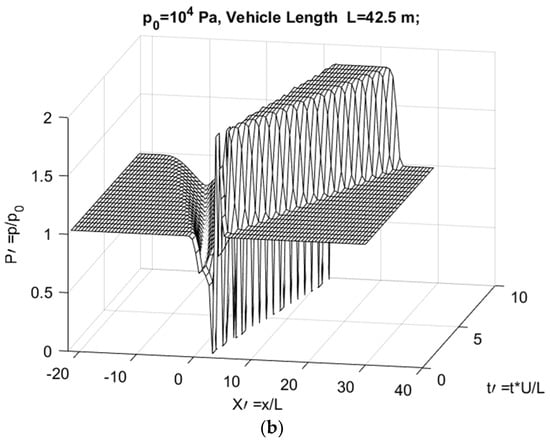 The pressure upstream and downstream is undisturbed because the tube is assumed long enough. The disturbances from the vehicle motion should never reach the ends before the termination of the computation. The vehicle’s motion is simulated by the moving duct shape in the tube x-axis.
