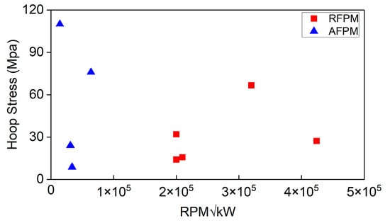 Linear speed–rotational speed relationship of RFPM and AFPM.