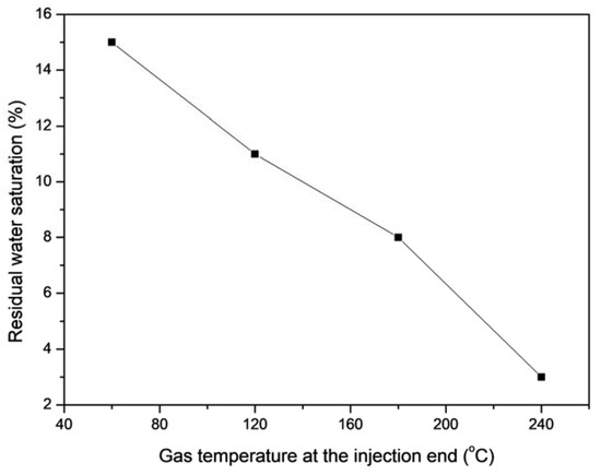 - With the injection of carbon dioxide, the residual water saturation of the core changes continuously, and remaining water saturation continuously decreases. It further illustrates the feasibility of drying by hot-gas injection.