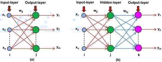 Schematic view of (a) Single-Layer Feed Forward (FF)-ANN, (b) Multi-Layer FF-ANN [].