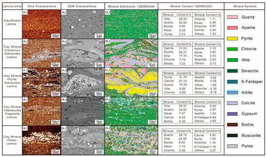 Distribution of mineral composition, reservoir, and oil-bearing patterns for different laminae.