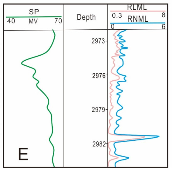 Siltstones are associated in definite proportion with claystone and sandstones. In cores, parallel as well as convolute beddings are observed in delta-front deposits (Figure 5) [9]. Parallel bedding are sometimes interpreted as horizontal bedding.The parallel and horizontal beddings are distinguished on the basis of laminae, and the former is less than one centimeter, indicating a high-water energy depositional environment. Convolute beddings formed on slopes due to shear stress in sand to silt size particles. It also appears in cross laminated sediments after deformation and has turned into small scaled anticlines and synclines structures [9]. Convolute bedding is commonly observed in the Es3z sub-member, and it is considered to be formed soon after deposition in siltstones [9]. As these deposits are interpreted to occur at the outer part of delta front in clinoform’s areas in the higher slope, they can also be formed in shelfal lobes. The corresponding log values are changed due to a variation in shale and sand contents in sheet sand (Figure 6). On GR log, middle to high amplitude values of serrated shapes are observed. Soft sediment deformation is also observed in natural levee deposits, and mostly sharp peaks are detected at the topmost part of a coarsening upward sequence with lower to medium GR log values (Figure 5A). Natural levees are found on both sides of distributary channels, and considered to be formed when channels deposits are overflown on the bank sides due to a flooding event. Besides convolute bedding, deformed bedding is common in siltstones (Figure 6A). It showed deformation in soft sediments with high dip angles as shown in the figure below (Figure 5A).