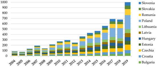 We searched for articles published between 2004 and 2019 as this period captured the beginning of the three waves of the EU’s Eastern enlargement—in 2004, eight CEE countries joined the Union (the Czech Republic, Estonia, Hungary, Latvia, Lithuania, Poland, Slovakia, and Slovenia); in 2007, Bulgaria and Romania became members; and, in 2013, Croatia joined the Union, and is still the youngest member state today. The end of the period marks the introduction in 2019 of the European Green Deal by the European Commission [54]. Although not all the papers relate directly to the EU, the timeframe was selected so the results can be discussed within the framework of EU membership as this has had a significant impact on the CEE energy sector [33]. Our final dataset consists of 3534 articles published over 16 years.