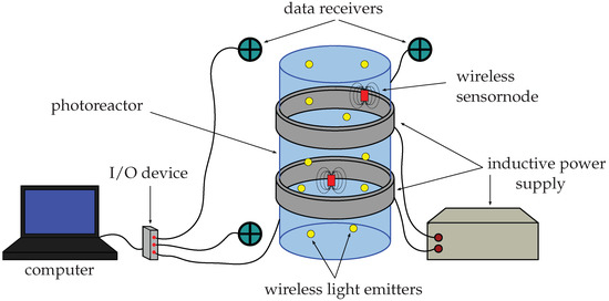 Conceptualization of an internal illuminated photoreactor expanded by a wireless sensor system.