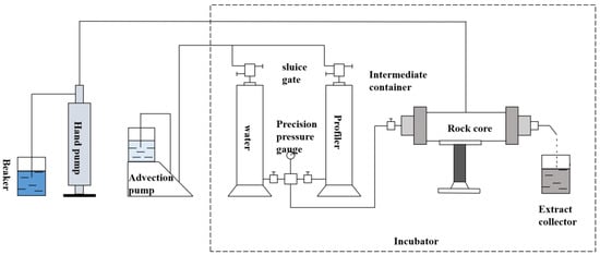 Flow chart of experimental equipment. (Note: Except for the advection pump, hand shaking pump and nitrogen bottle, other parts are placed in the 65 °C electric constant temperature oven.).