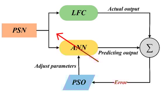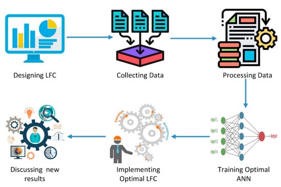 In this paper, an LFC is designed based on an ANN technique for a single-PSN and multi-PSNs. The training data of the proposed ANN model are collected and analysed from a Simulink LFC test, as shown in Figure 1. To address the major challenges of ANN technique, particle swarm optimization (PSO) is utilised. This optimization is divided into two sections: calculating the right structure of ANN technique and optimizing the initial neurons of the ANN model, resulting in the regression of ANN nodes; and the global training error of the ANN model is minimised. Consequently, the frequency response of the LFC system using the optimal ANN technique becomes the most reliable when compared with the conventional methods for the ANN and PID controllers due to its fast-processing time. In addition, it is valid to enhance the performance of the multi-area PSN under a fault condition. The rest of the paper is organised as follows: Section 2 presents the state of art on the optimal use of ANNs in an LFC system. Section 3 introduces the modelling of the LFC application. The principal work of the ANN approach and the PSO algorithm as well as the optimal ANN model are described in Section 4. Section 5 discusses the outcome results. Finally, Section 6 reports the conclusion.