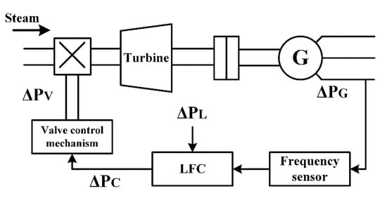 The normal operating state of the PSN is that it matches the total power generator with the total load demand. To address this challenge, the speed of connected turbine changes with regard to the load demand of the PSN. This happens when the size value of the input steam is regulated by the governor of the turbine to correspond with the updating load demand. Consequently, the frequency system will reset to a different value which may be offset from the standard frequency value of the PSN. To address this, the proposed control is designed to adjust the speed error of turbine with regard to the load demand. The proposed LFC will enhance the reliability of the PSN by regulating the frequency response level of the system into a desired operation point. The main objective of the LFC is that it resets the speed governor of the turbine based on the load demand. This happens when the LFC senses the power demand of the generator compared with the standard power of the PSN to adjust the turbine speed based on the required steam, as illustrated in Figure 3.
