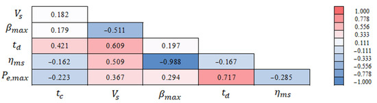 Correlation matrix to summarize the results referring to CAES. Values close to +1 indicate that the two variables are positively correlated, while values close to −1 indicate a negative correlation. If the value is close to 0, the variables are not correlated.