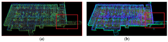Point cloud map constructed for Scene 2: (a) by LeGO-LOAM; and (b) by LeGO-LOAM-SM.