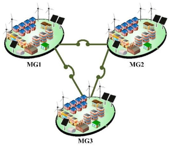 Peak load (PL) is an important factor with a significant impact on the component sizing in MGs. Demand-side management (DSM), integration of ESSs, and integration of electric vehicles (EVs) to the grid are considered as three methods in recent research as a solution for peak load shaving []. However, power sharing amongst MGs in NMGs results in the possibility of providing PL demand with the OR of adjacent MGs. The PLs and ORs are considered two main factors of MGs to define a reduced factor (RF) by the proposed algorithm in this paper. The RF represents the amount of energy that can be reduced when the MGs collaborate as an NMG. Consequently, the RFs assess the size of dispatchable components while avoiding the reliability compromise due to OR reduction. Renewable energies exploit their maximum power due to utilizing maximum power point tracking (MPPT) to optimize the harvested energy.