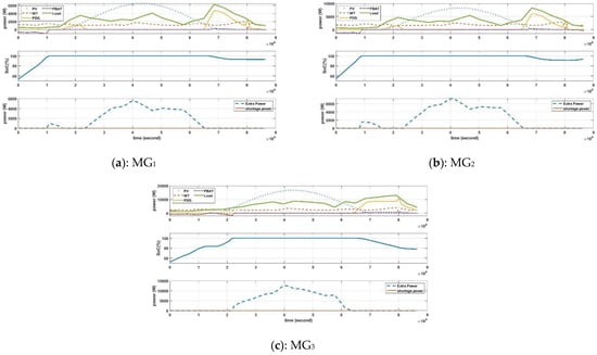 Optimal operation of the HIMGs: (a) MG1, (b) MG2, and (c) MG3.