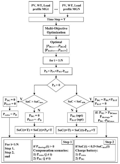 To obtain the optimal operation for each MG, a power management unit has to be applied to the system. Figure 3 represents the power management in this paper.