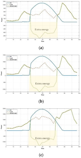 Table 3 represents the optimum design of the three MGs considering the load profiles in Figure 2 by HOMER Pro. The considered MGs are situated in the geographical coordinates of N, E (Barcelona City). The solar, wind, and temperature resources were loaded from NASA Prediction of Worldwide Energy Resources, and Table 4 presents the relevant costs. In order to increase the reliability of the MGs, the operating reserve for solar and wind power output and load in each current time step was considered and presented as the constraints in Table 4. Because forecasting solar radiation is more reliable than wind profile, the operating reserve for WT is usually greater than PV.