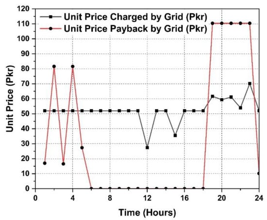 Here, is the unit price charged by the grid, and is the unit price offered by the grid. As the government has given an incentive to the residential user to increase solar generation and utilization to make the environment clean, the energy sold to the grid will be subtracted from the energy purchased from the grid.