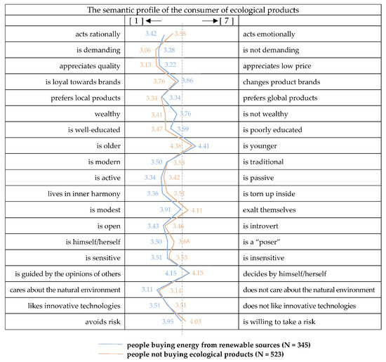 - How is the consumer of ecological products perceived by renewable energy buyers and by people who do not buy ecological products?