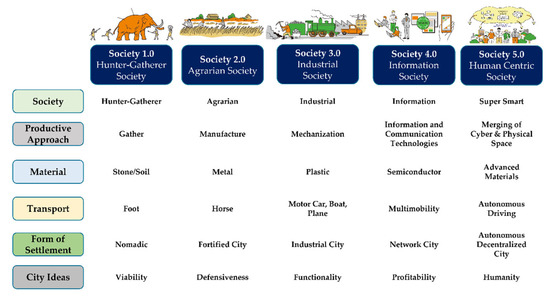 - Deguchi, A.; Hirai, C.; Matsuoka, H.; Nakano, T.; Oshima, K.; Tai, M.; Tani, S. What Is Society 5.0? In Society 5.0: A People-Centric Super-Smart Society; Springer: Singapore, 2020; pp. 1–23. [Google Scholar] [CrossRef]