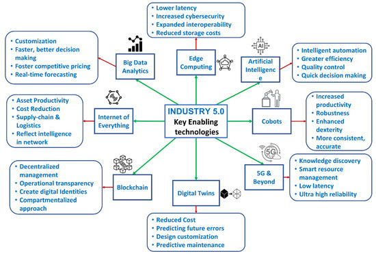 - Maddikunta PK, R.; Pham, Q.V.; Prabadevi, B.; Deepa, N.; Dev, K.; Gadekallu, T.R.; Ruby, R.; Liyanage, M. Industry 5.0: A survey on enabling technologies and potential applications. J. Ind. Inf. Integr. 2022, 26, 100257. [Google Scholar] [CrossRef]