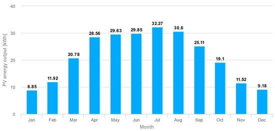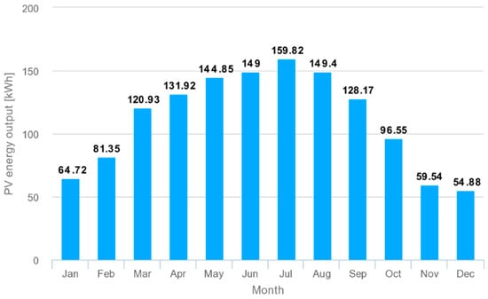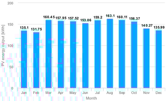 Monthly energy output from a fixed-angle PV system in the model WWTP location [35].