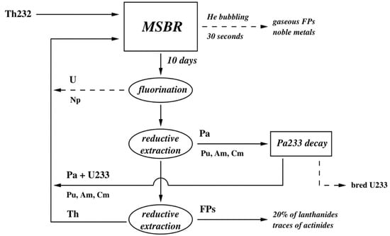 Simplified flow diagram of the MSBR reprocessing unit [22].