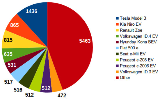 Charging stations considered were already installed, working, and available for public recharging; sockets included CCS2, Type 2, and CHAdeMO, and the recharging power was about 50 kW. For the purposes of the analysis, relevant types of EVs were chosen according to EV market sales in Spain, as reported in