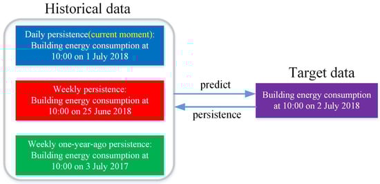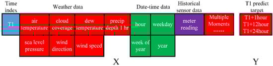 A data structure suitable for building energy consumption prediction is proposed. Sliding windows consist of temporally discontinuous data. The sliding window consists of building data for the past 24 h, 24 h in the previous week, and 24 h in the previous year.