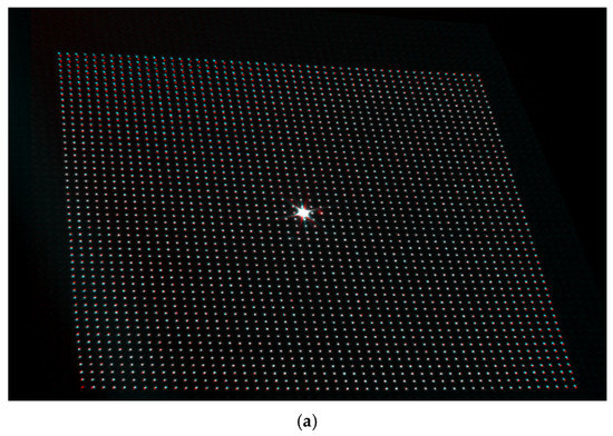 The condition for finding the correct stereo correspondence of the markers recorded on images, using the method proposed in this paper, is to find with 100% efficiency the stereo correspondence between the matching points distinguished in the pair of images [37]. Incorrect fittings at this stage will deform the image and, as a result, lead to incorrect or missing matches. It should be noted that if all fitted points are not matched, the image cannot be transformed. To find the stereo correspondence of the matching points, the classical approach (searching for points on a pair of images with epipolar lines) can be used [38]. The same point has the same y-coordinate in both images, and if there are more such points on the images, they successively count towards increasing values of the x coordinates in the image.