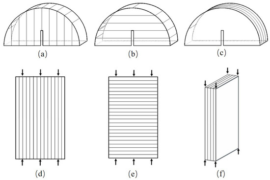 Josh et al. [3] analyzed the microstructure and anisotropic characteristics of shale by CT and electron microscope scanning techniques and pointed out that this anisotropic characteristic is mainly caused by the clay mineral filling and fracture development of shale. Bayuk et al. [4] believed that attention should be paid to the influence of anisotropy caused by the development of fractures and the irregular filling of clay minerals on the microseismic monitoring signals. Banik [5] studied the anisotropy of shale wave velocity and its causes and pointed out that the wave velocity in the vertical deposition direction is larger than that in the parallel deposition direction, and the main reason for this is that there are gaps and clay filling in the sedimentary layer. Lekhnitskii [6] established the theoretical foundation of anisotropic rock mechanics by solving the elastic solutions of differential equations of anisotropic media with the classical theory of elasticity of continuum media. Wardle and Gerrard [7] introduced the concept of equivalent anisotropy and its suitability for layered media (such as shale materials). Salamon [8] proposed an equivalent model of layered medium and established a mechanical structure model of layered rock mass by simplifying the rock material of the actual complex structure into a homogeneous transversely isotropic material, and then they used five independent parameters to mark the transversely isotropic characteristics, with the isotropy along the deposited layer and the anisotropy along the vertical deposited layer. Based on this model, the authors further simplified the layered rock mass as a layered composition of plate-like uniform elastomers, and the mechanical properties of each layer of material correspond to different elastic parameters. Many researchers carried out uniaxial compressive tests and Brazilian splitting tests of plate-like rocks (shale, schist, mudstone) and summarized the change law of compressive strength, tensile strength, elastic modulus, and Poisson’s ratio [9,10,11,12]. Pomeroy et al. [13] conducted triaxial compression tests on hard coal rock and diatomite rock, respectively, then analyzed the changes of mechanical parameters with the increase of confining pressure. Wang et al. [14] conducted uniaxial compression tests and pseudo-triaxial stress difference compression tests on several types of schist and analyzed the axial and radial deformation of various types of specimens with the change of the inclination angle of the weak plane and different confining pressure conditions. Shi et al. [15] evaluated the applicability of different test methods for testing the mutual orthogonal mechanical parameters of rock in three directions by performing uniaxial compression, Brazilian splitting, and ring restraint experiments on anisotropic rocks.