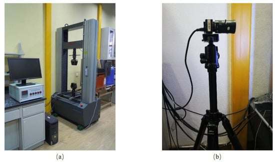 Test equipment: (a) MTS electronic universal testing machine; (b) MV-VD500SM/SC digital camera.