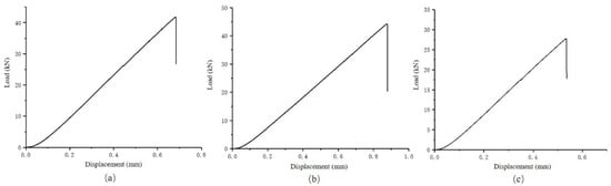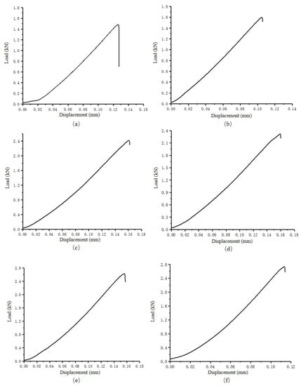 The typical load-displacement curves of the three kinds of non-cracked shale specimens in the compression failure test are shown in Figure 10, and the peak load, maximum displacement, compressive strength, and elastic modulus of the test are summarized in Table 2.