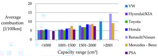 For research purposes, a compilation of technical data of engines of individual brands in capacity ranges was also adopted: less than 1000 cm3, 1001–1500 cm3, 1501–2000 cm3 or above 2001 cm3.
