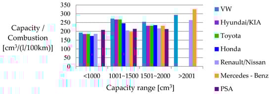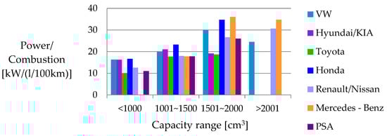 - in the range from 1001 cm3 to 1500 cm3, VW, Hyundai/KIA and Honda have a high power-to-combustion ratio;