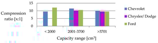Compression ratios in individual capacity ranges among American car brands. Source: Developed own.