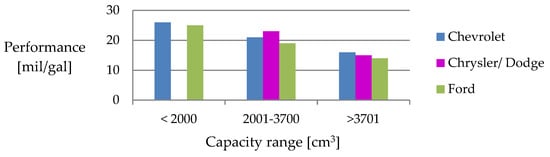 Performance in individual engine capacity ranges among American car brands. Source: Developed own.