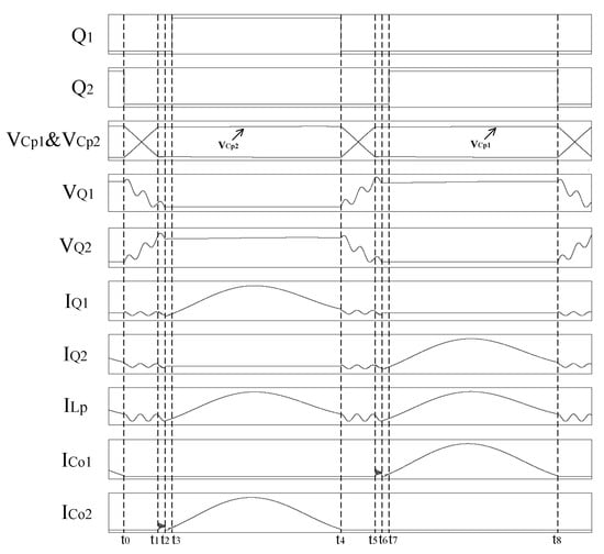 Throughout the process of a completed switching cycle, from ~, the converter operates in eight modes, as in the following exposition. The key waveforms are exhibited in Figure 4.