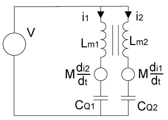 The equivalent circuit of Figure 9 can be depicted in Figure 10 during the time that switch is on. Normally, the equivalent output capacitance, , is much smaller than the buck capacitance, , so the main resonance can be located in the loop consisting of and leakage inductance, . According to KCL,
