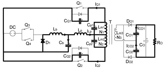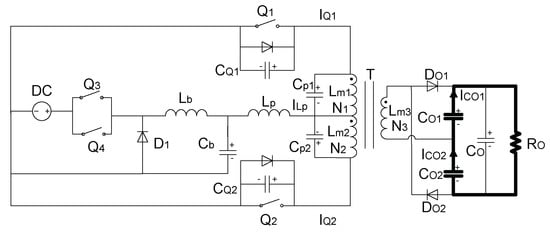 (1) All parasitic parameters, including the leakage inductance, magnetizing inductance, and parasitic capacitance, are fully utilized in the proposed two-stage power converter. Only an external resonant capacitance is required for the resonant tank. Therefore, fewer components are needed.