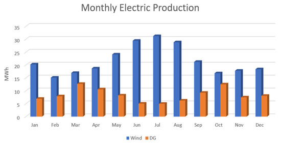 Wind/Battery/DG-based electricity production throughout the year.