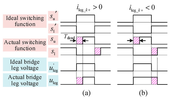 Dead-time effects on the bridge leg voltages when (a) and (b) .