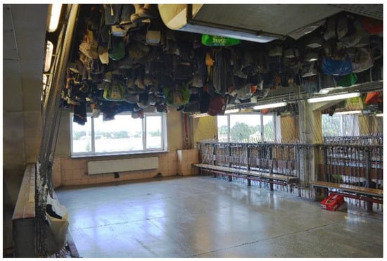 The sanitation and hygiene facilities, which include chain baths and showers, can be the most challenging (Figure 3). Before descending, workers leave clean clothes on the clean side of the chain bath and walk to the other side, where each worker has their own hook with work clothes. This system of hanging up clothes allows all clothes to dry well after finishing work. However, the nature of the bathhouse during the epidemic posed a serious risk. Mainly because of the very high accumulation of workers in the bathhouse compartments. The distribution of workers in the bathhouse is not orderly in terms of ward and work areas. Workers from the surface, longwall, face and workshop departments may meet in the same compartment. If an infection was detected in any of them, there was a high probability that the rest of the workers were also infected.
