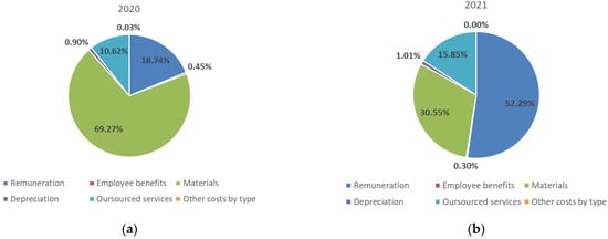 In the context of total costs by type, the costs incurred for COVID-19 were not significant. In 2020, the share of these costs in total costs was around 0.25%, while in 2021, this share fell to 0.12%. Comparing pandemic costs alone year-on-year, it should be noted that in 2021 there was a decrease in these costs of around 50%. The breakdown of generic costs in 2020 and 2021 is shown in Figure 13.