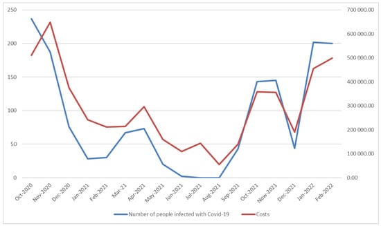 The number of people infected with COVID-19 and costs incurred for the same period, i.e., October 2020 to February 2022.