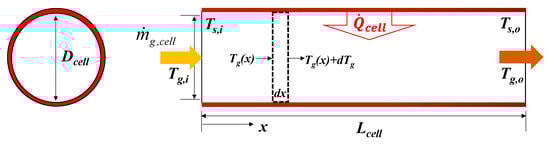 The heat flux into the gas () is defined as Equation (5), which can be assumed to be uniform throughout the cell.
