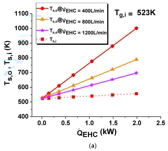 The heat losses from the EHC to the surroundings can occur because of convective and radiative heat transfer from the EHC housing to the surrounding air ( and ). The net heat energy supplied to the EHC () then can be estimated using Equation (19).