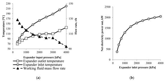 5.2. Influence of Expander Inlet Pressure and Temperature