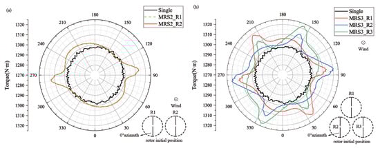 Torque–Azimuth angle: (a) Twin-rotor; and (b) tri-rotor wind turbine.