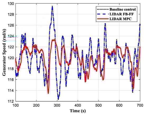 In this section, the proposed LIDAR-based MPC design was simulated on the nonlinear 5 MW Supergen Exemplar wind turbine model. The MPC controller was compared with two previously developed controllers, one being the baseline control, and the other the LIDAR-assisted FB-FF control described in [].