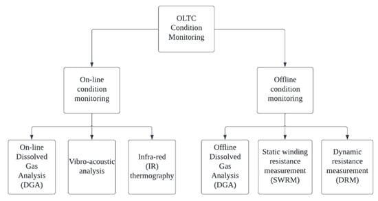 The failure of any transformer can be disastrous, particularly for critical and high-rated power transformers that feed a vast number of loads. Faults in transformers are frequently challenging to diagnose or find due to intricate winding structures, but a multi-parameter CM technique provides valuable data to diagnose the fault and identify its location. Downtime and costs can be considerably reduced if internal repairs can be completed. Unplanned outages of transformers and catastrophic failures caused by faults can be minimized with CM. CM enables the plants ageing to be monitored and hence regulated, as well as forecasted and prolonged. Figure 10 shows two main categories of OLTC condition-monitoring techniques.